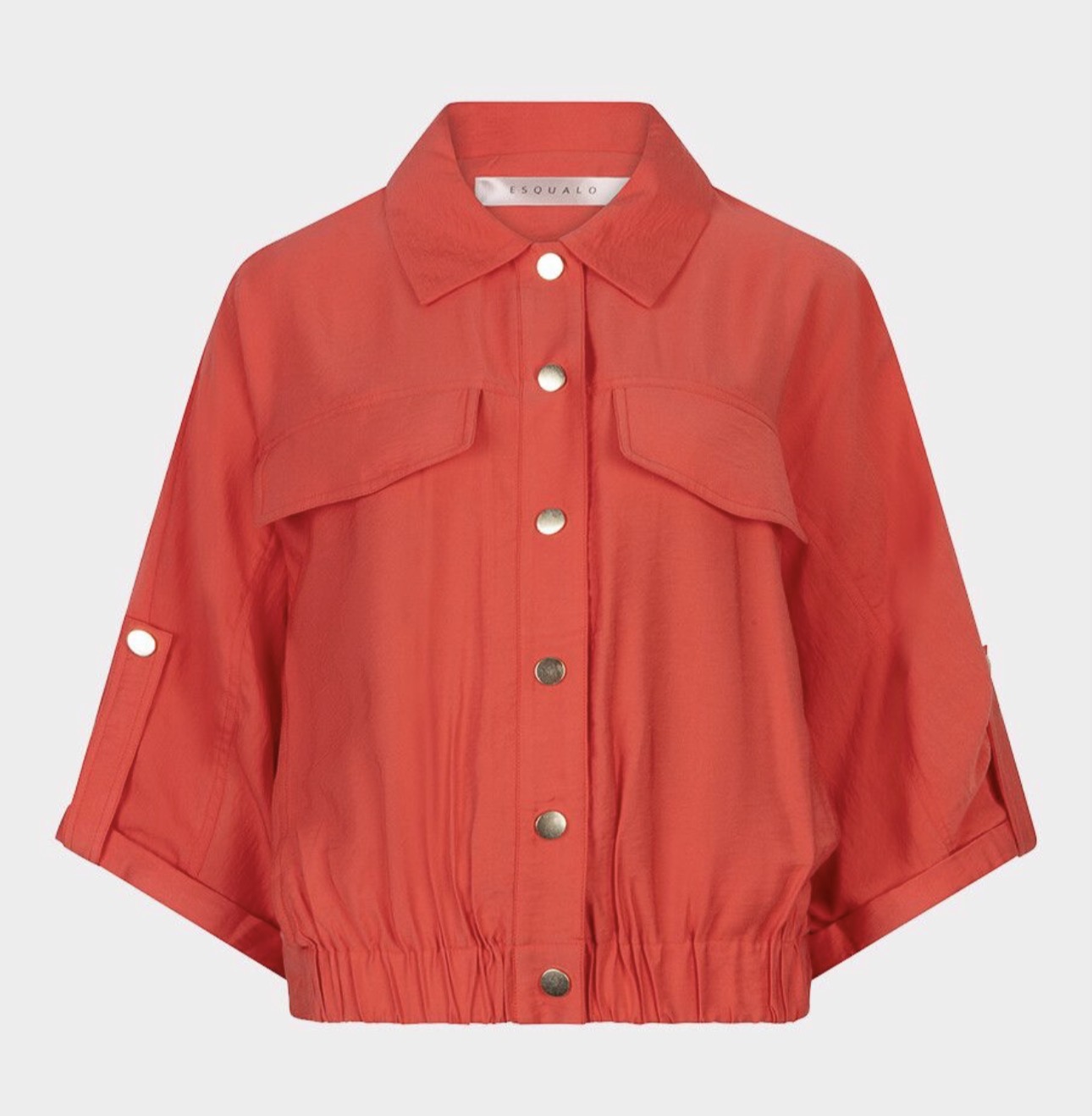Boxy jasje van Esqualo met gouden drukknopen, driekwart mouw en faux klepzakken aan de voorzijde.