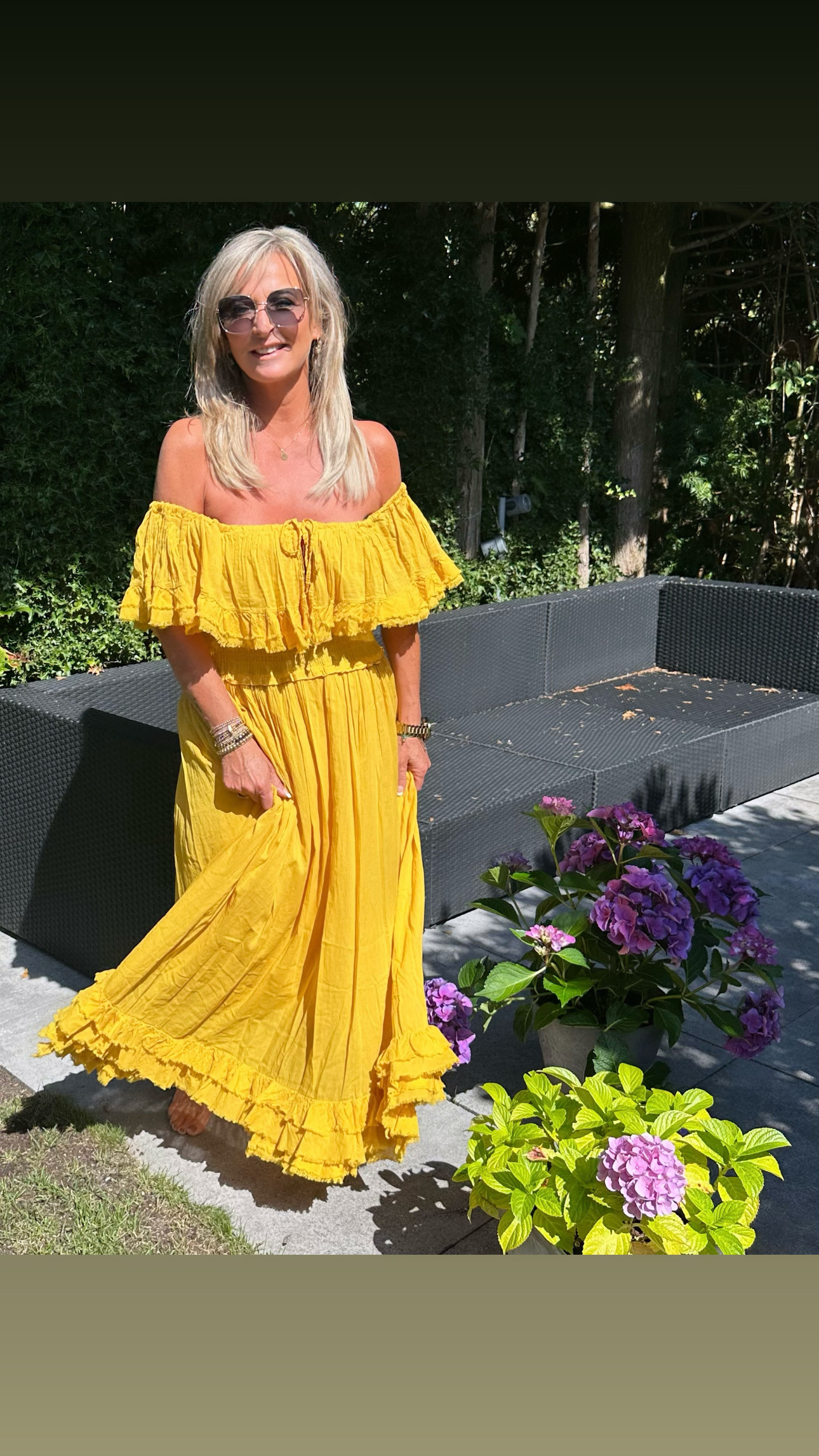 Je kan hem off shoulder dragen maar ook gewoon op de schouders laten hangen.