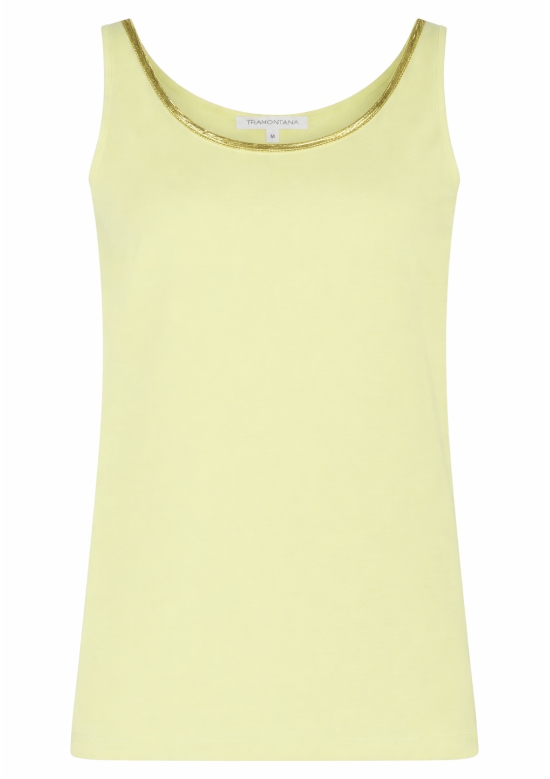 De Singlet Lurex Tape van Tramontana is een verfijnde en veelzijdige basic met een subtiele, elegante uitstraling die perfect past in elke garderobe. Deze singlet is gemaakt van een comfortabele en soepele stofmix van 85% polyamide en 15% elastaan, wat zorgt voor een zachte feel, optimale stretch en een mooi aansluitende pasvorm. De ronde hals en mouwloze snit vormen een tijdloze basis, terwijl de fijne lurex tape langs de hals- en armsgaten een subtiel glanzend accent toevoegt en het ontwerp net dat beetje extra geeft. Dankzij het minimalistische silhouet is deze singlet ideaal om zowel solo te dragen als onder een blazer, vest of jasje. Verkrijgbaar in een breed kleurenpalet van Off White, Breezy Blue, Ink, Emerald, Peach Infusion, Celery, Aloe en Black biedt deze top eindeloze combinatiemogelijkheden. Draag de Singlet Lurex Tape op een jeans voor een casual look of combineer met een elegante broek of rok voor een stijlvolle, vrouwelijke outfit. Een essentiële basic die comfort en verfijning moeiteloos samenbrengt.