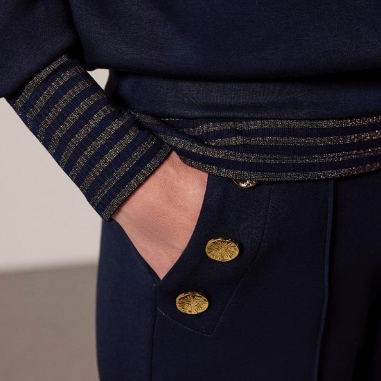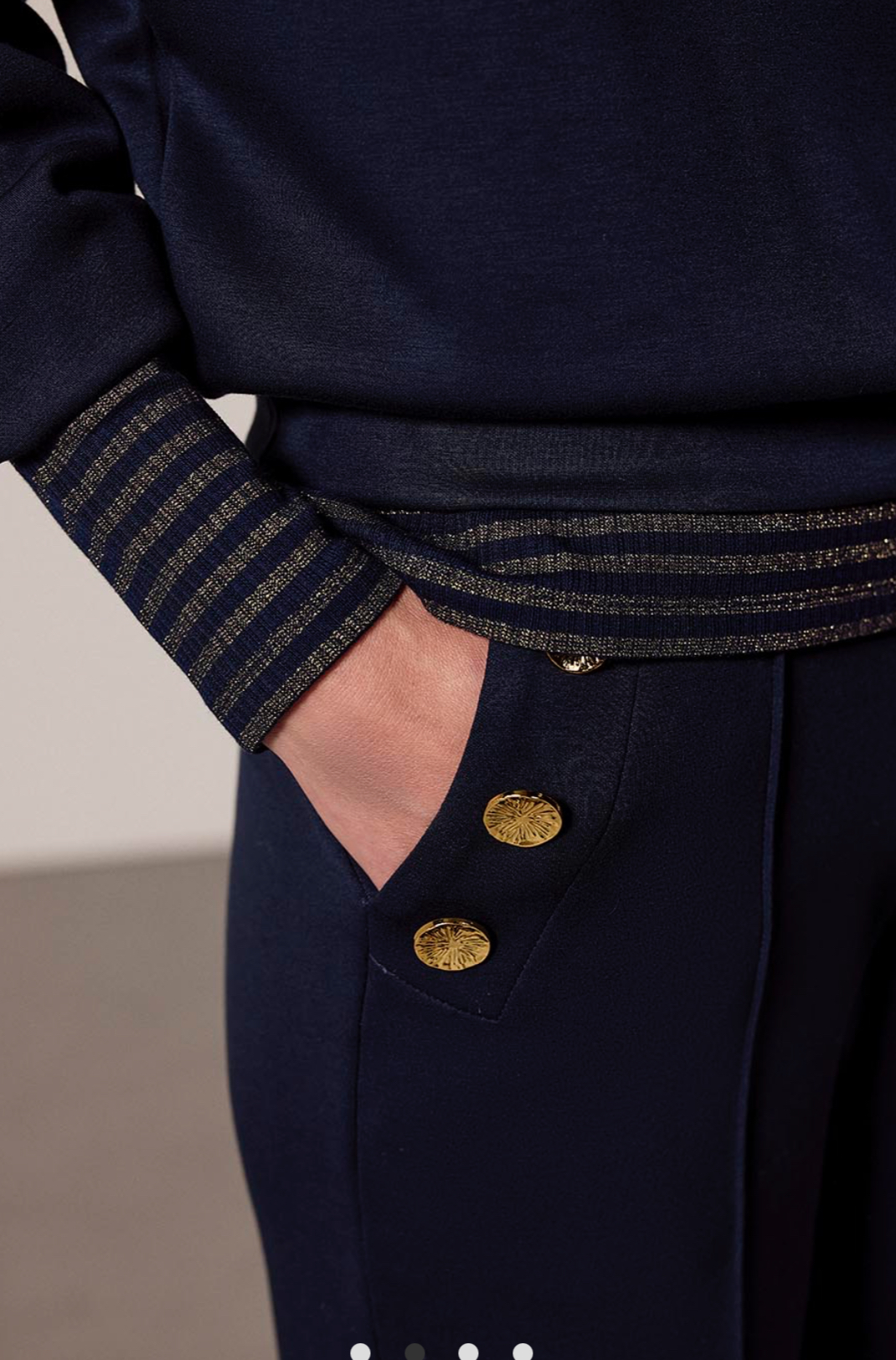 Verkrijgbaar in de kleur midnight, past deze broek makkelijk bij verschillende outfits, of je nu een casual of meer geklede look zoekt.
